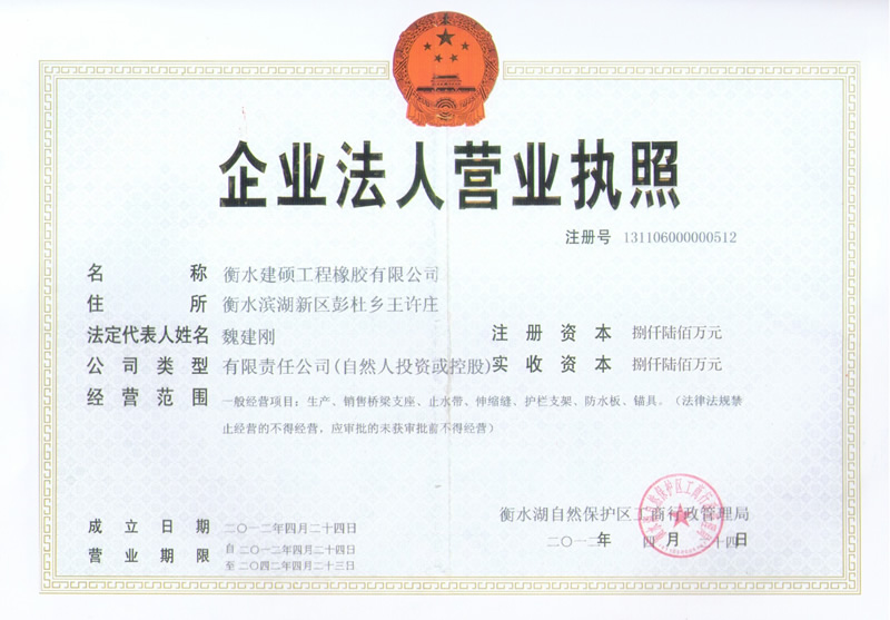 衡水建硕工程橡胶有限公司座落于衡水市滨湖新区,占地面积50000平方米,注册资金壹亿零捌拾万元整,是生产橡胶支座、盆式支座、充气芯模、伸缩装置、止水带的专业厂家。公司始建于九十年代,经过近二十年的发展壮大,现有员工300多人,其中高级技术人员45人,高级技工103人。